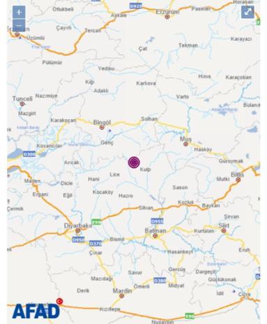 Afad, depremin merkez üssünün diyarbakır ergani olduğunu açıkladı.